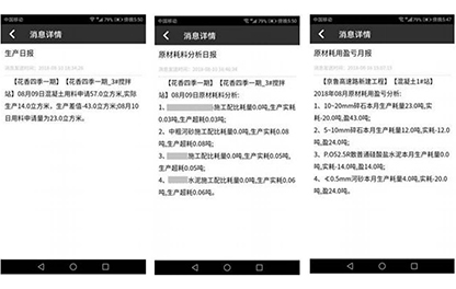 攪拌站生產情況實時分析,每天、每月定時推送,及時了解拌合站生產及原材耗用情況。